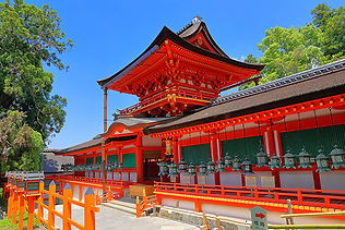 ضريح تاريخي مزين بالفوانيس البرونزية والحجرية، ويقع داخل غابة مقدسة